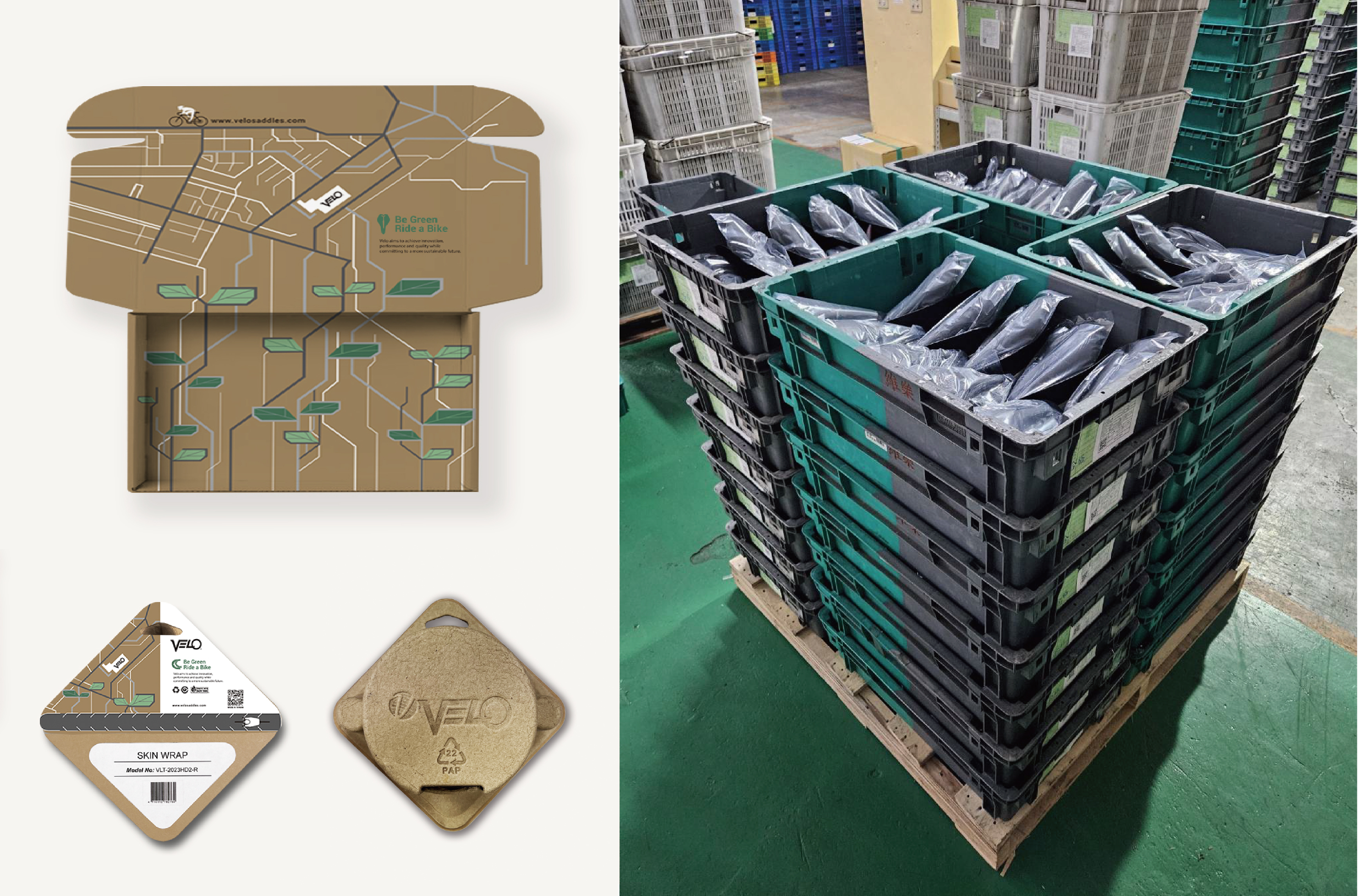 Velo與全球知名自行車零件品牌SRAM展開了一場前所未有的合作,Velo與SRAM的工廠相距不到20公里,大幅縮短供應鏈流程與運輸成本,也減少了產品的碳排放,此次雙方合作成功將回收的碳纖維餘料與尼龍結合,製造出高性能自行車座墊材料,使得原本可能掉價的碳纖維餘料仍保有同等價值。這款新材料已通過Velo嚴格的實驗室測試與驗證,確保能夠滿足生產及性能需求,並成功應用於高階座墊上。